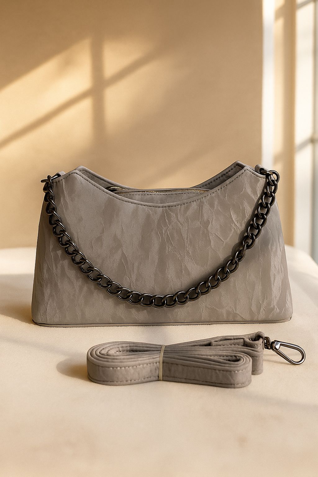 Soft-textured and lightweight, this bag offers a modern silhouette with ample space for essentials. Perfect for both casual and dressy looks.